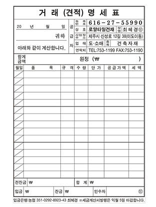 16Àý °Å·¡¸í¼¼Ç¥/°è¾à¼ (188X257mm)