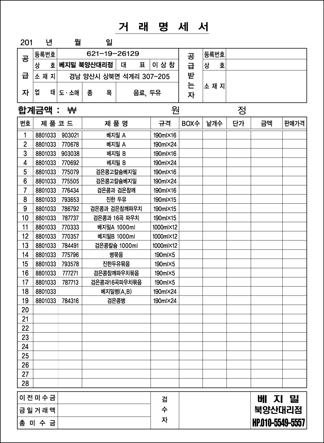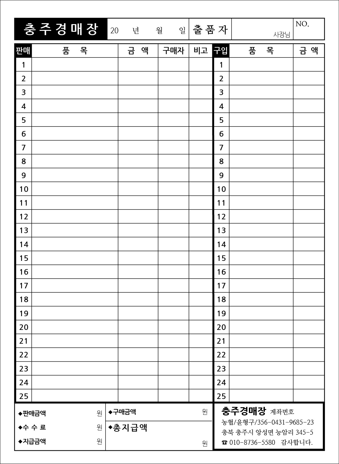 16Àý °Å·¡¸í¼¼Ç¥/°è¾à¼­ (188X257mm)